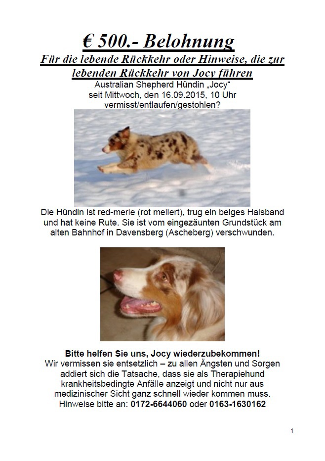 Jocy ist im Ruhestand, wird züchterisch nicht genutzt sondern darf je nachdem wo sie gerade verweilt - bei meiner Tochter oder auch mal hier - das Zepter schwingen; da sie unangefochtene